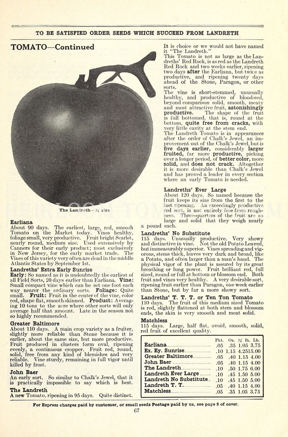 Heirloom Tomato® Landreths' Extra Early Sunrise=Landreths' Sunrise