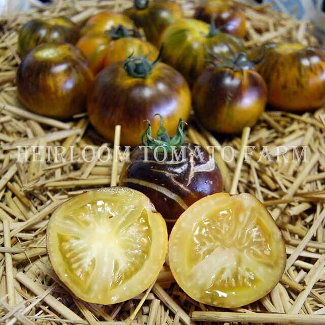 ◆イエローのベースにブラウンカラーのアントシアニン・ブルーがとてもすてきで、上品な印象の新しいブルートマト。果肉もしっかりとして日持ちも良い。弊社での最高糖度6。