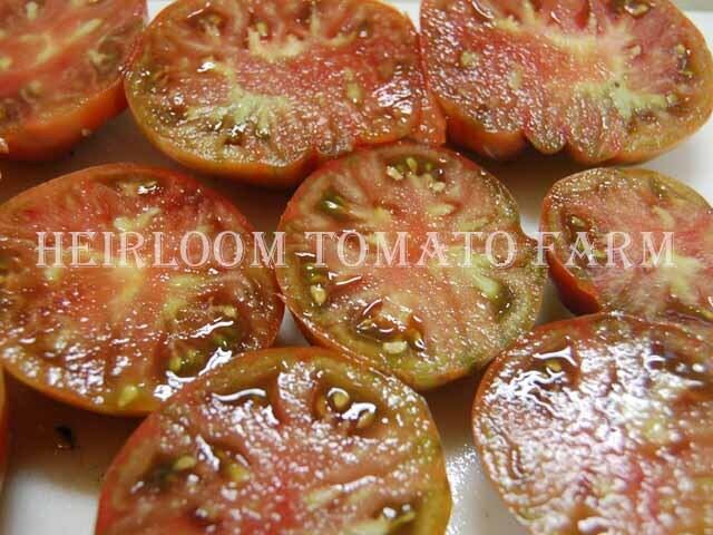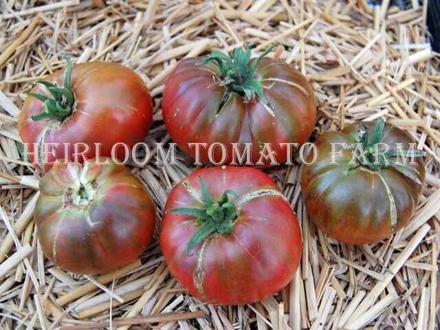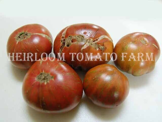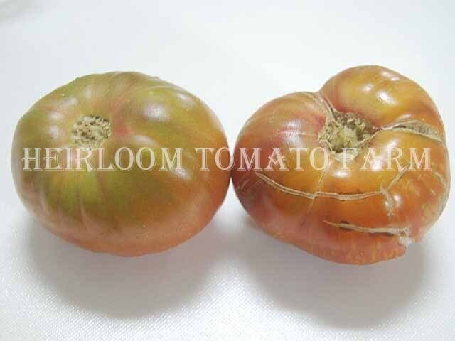 ◆幾分フラット(扁平)なプリーツ(くびれ・波形)のある、重さ約150gから約300g、Tom WagnerによってBerkeley Tie Dyeとの交配から選抜、作出されたダーク・グリーン・ベースにワインレッドのコンビーネーション・バイカラー(複色)ビーフステーキ状果肉品種。