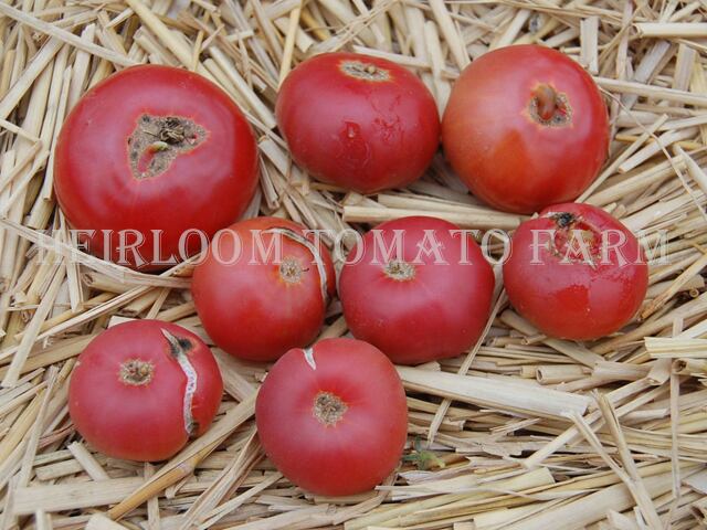 ◆ロシアの営利生産品種で。直径約3〜8cm、幾分扁平にもなるディープ・パープルエアルーム・トマト。
