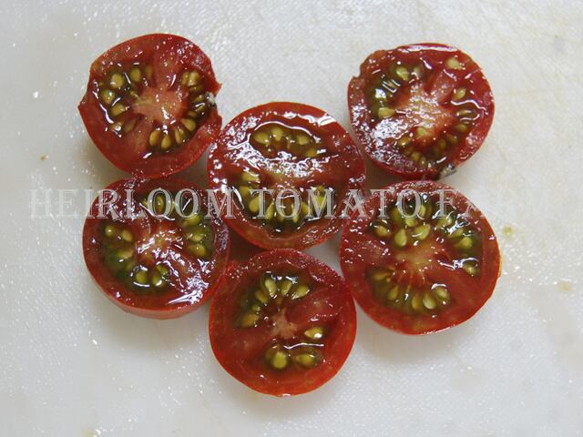 ◆コンパクトな株にオールドファッション・フレイバーの直径約2.5cm、重さ約20〜30gのカフェカラーのチェリー・トマト。