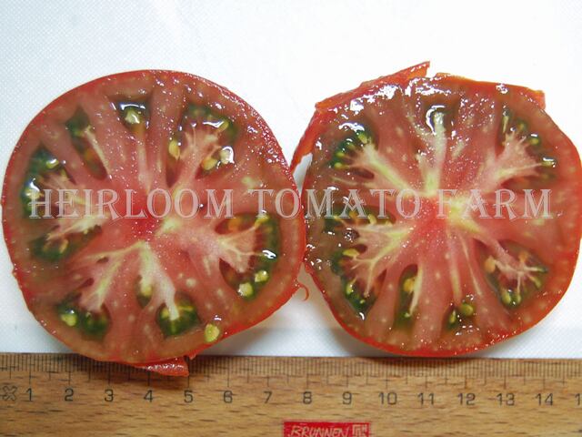 ◆『Dwarf Tomato Project ドワーフ(矮性品種)・トマト・プロジェクト』によって "New Big Dwarf'" と"Paul Robeson'"の交配によって作出された幾分フラット(扁平)なディープ・マホガニー。