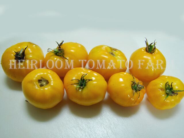 ◆最近フランスのEric Pedebasによって"Black Crimea" with "Pineapple".の交配から作出された二つのライン、オレンジとグリーンの一つ。.重さ約180gから約300g、幾分フラット(扁平)なプリーツ(くびれ・波形)のあるトマト。オレンジ・イエローのビーフステーキ状果肉で中心にピンクが現れる。