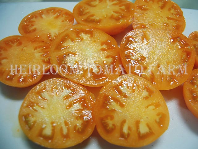 ◆重さ約90g〜約50g、‘Dwarf Tomato Project’ドワーフ(矮性品種)・トマト・プログラムとしてオーストラリアのPatrina Nuske Petitによって "Golden Dwarf Champion" と"Elbe"の交配により作出された幾分フラット(扁平)なオレンジのビーフステーキ状果肉品種。