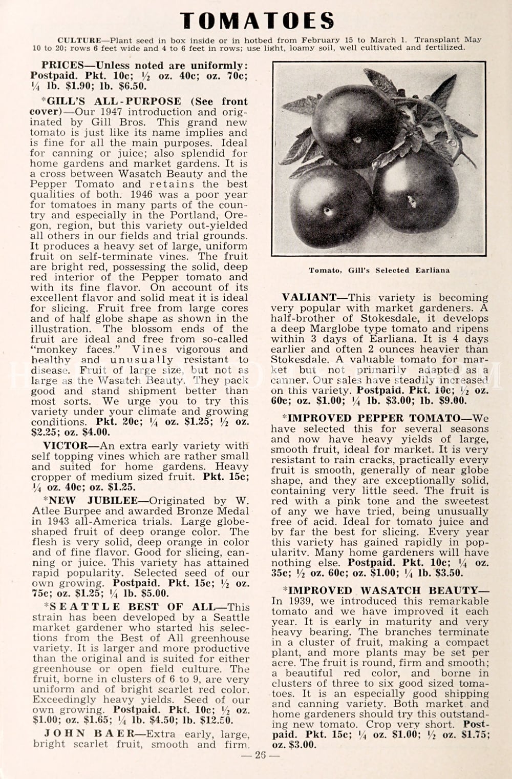 ◆1947年にオレゴン州ポートランドのGill Brothers Seed Companyにによって Wasatch Beauty"" と"Pepper tomato."の交配によって作出された。直径約5cm、均整の取れたその名の通りあらゆる用途に利用出来るオールマイティエアルーム品種。