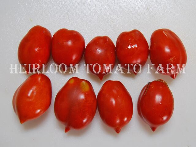 ◆出自は定かでは無いが、イタリア生まれの重さ約80gから約120g、先端のニップルが尖ったオレンジレッドのエロンゲイテッド(細長い)形で1房に7果〜10果をクラスター状に着ける。