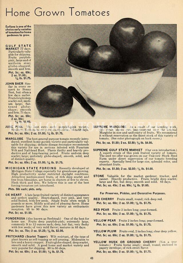 ◆1917年に”Merveille”と“Globe”の交配によって作出されたMarglobeからの改良品種で約160g〜180gのレッドの滑らかなエアルーム品種。耐病性に優れている。缶詰に向く。