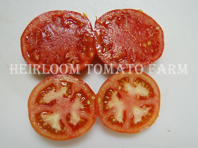 ◆元来はメキシコ生まれです。Amishland SeedsのLisa Von Saunderによれば、彼女はNorwood Meinersからオリジナルの種子を手に入れました。彼は彼のトマトコレクターの仲間であるイリノイ州OblongのNeil Lockhart から種子を入手した。 NeilはMexico DurangoのJesus Carpioからこの種を受けたオクラホマ州Midwest CityのBrian Sandersから元の種子を手に入れました。だからこのすばらしいトマトは本当にたくさんの旅行したことになります。レッドで光沢のあるショルダーに凹凸のある幾分フラット(扁平)なビーフステーキ状果肉品種です。Mexican Heirloom !!!