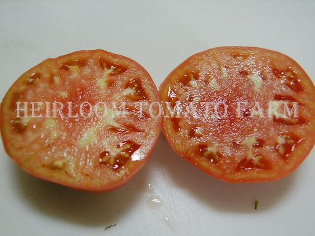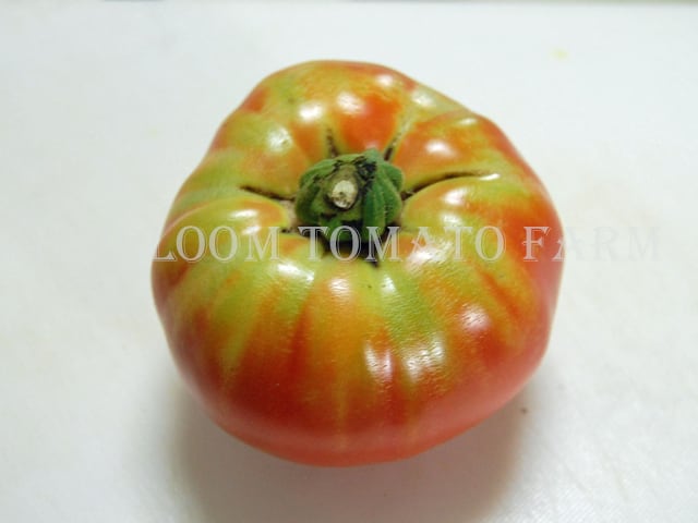◆West Virginia(一説にはオハイオ州のVinton Countryとも言われる。)のGillogly家に80年以上継承されてきたFamily Heirloom、幾分平たい直径約9cm〜10cm、約350g〜500gで1房に2果〜3果着ける明るいローズ色のビーフステーキ状果肉品種。種子が少なく食べやすい。柔らかなテイスト。