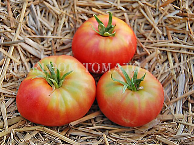 ◆巨大な約900gで、ミーティなピンク・レッドのビーフステーキ状果肉品種はピーター・ヘンダーソン種苗が1891年紹介したもです。1903年にはそのカタログで、「プライズを超えた、リッチでミーティ。果肉が厚くデリシャスな缶詰向き」と掲載されました。未だにガーデナーに人気です。