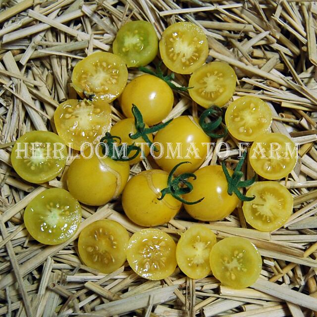 ◆出自は定かでは無いが、直径約2.5cm、約15g〜約20gで、ラウンド・クリーム・イエローのチェリー・トマト。ホワイトの果肉で芳香性のある、ソフト・フルーティ・フレイバー。