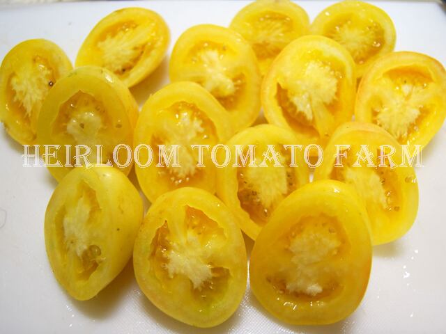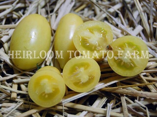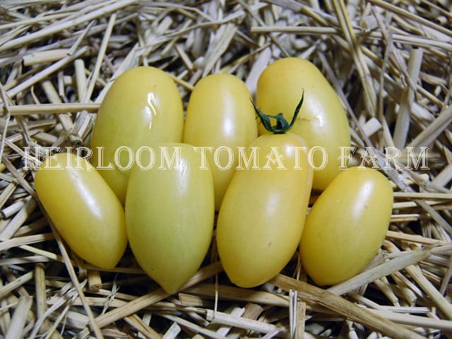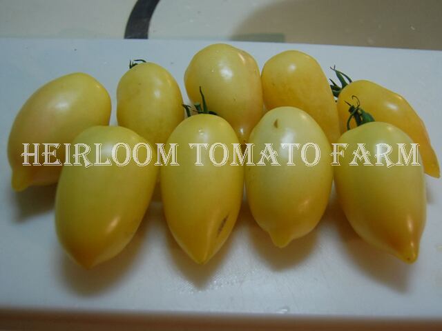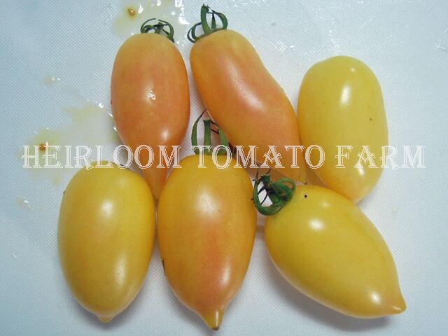 ◆長さ約7.5cmで、クリーム色がかったホワイト・イエローのソーセージ・タイプ・ペイストトマトで高収穫。1房に6果〜8果着ける。非常に良いフレイバー。イエローのソースを作るならぜひどうぞ。生育旺盛な株で高収穫。弊社での最高糖度8。必須品種の一つ。乾燥にも強いと言われる。