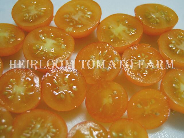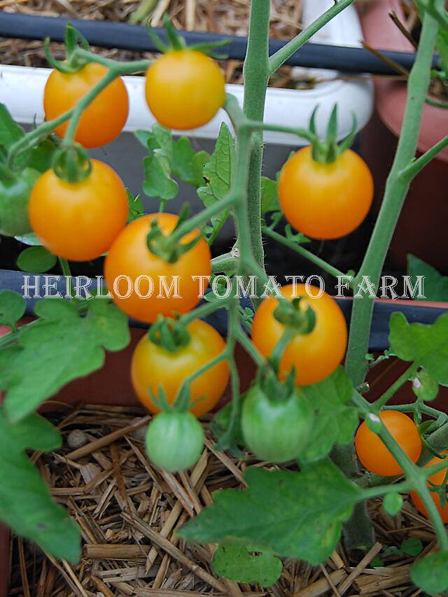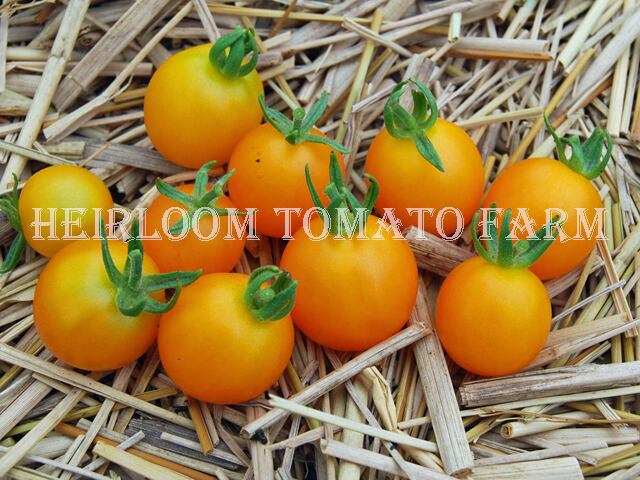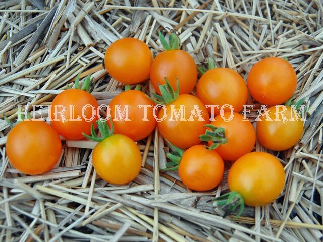 ◆スウェーデン生まれのオレンジ・イエロー・チェリー・トマト。重さ約10gから約70g、1房に8果〜10果着ける。高収穫品種。