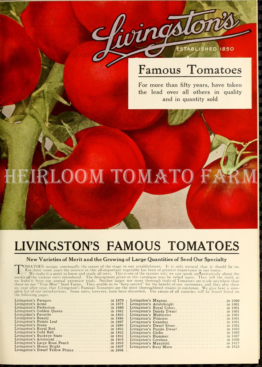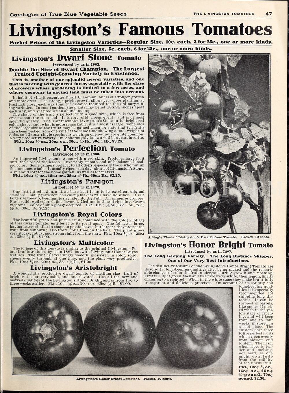 Heirloom Tomato® Livingston's Aristobright=Dwarf Aristocrat Honor Bright in 1901