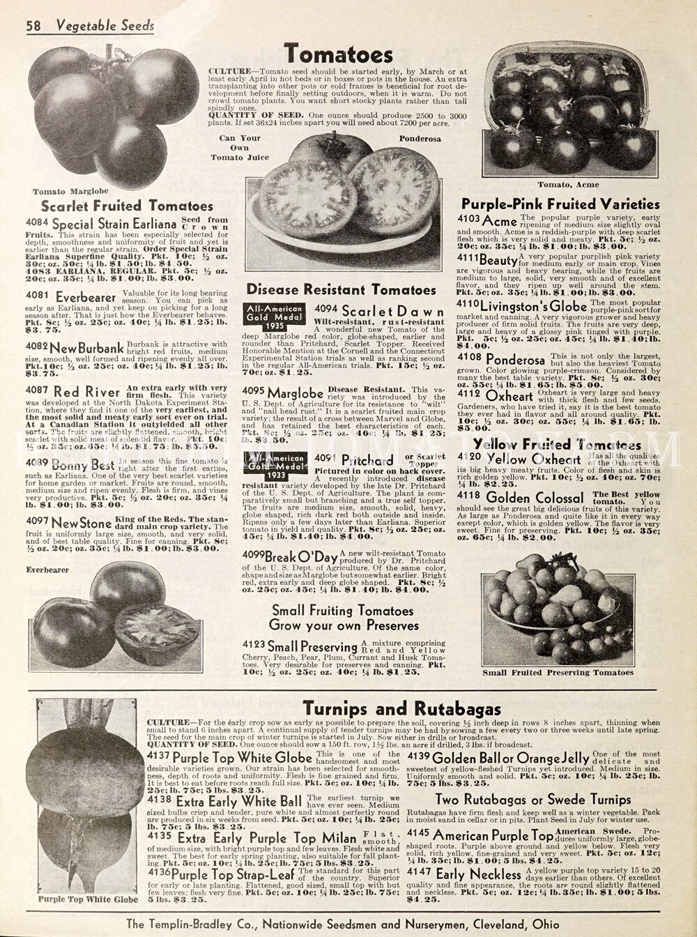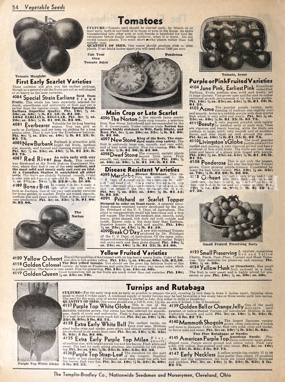 ◆This variety was listed in the "Templin-Bradley Seed Company" catalog in 1933.